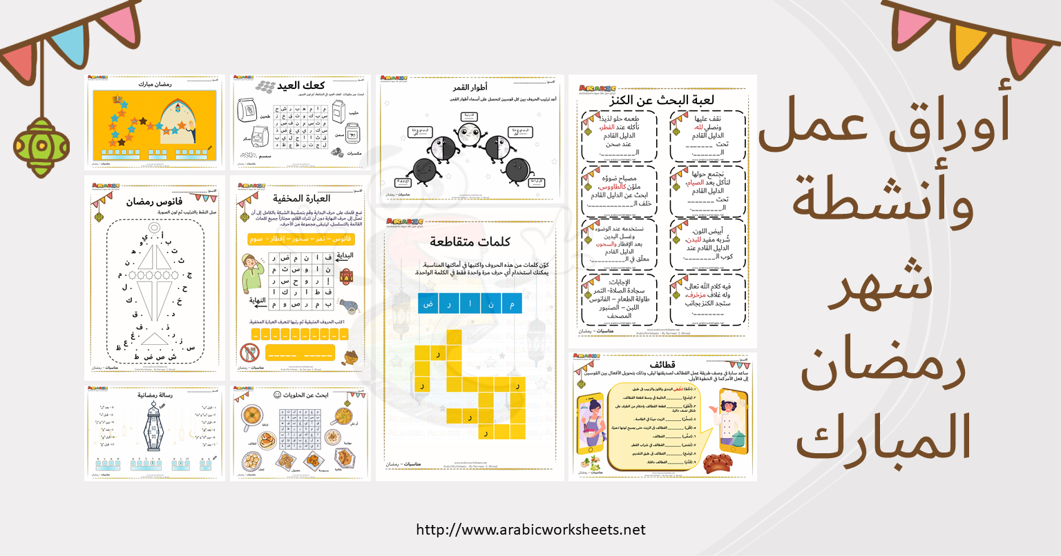 أوراق عمل وأنشطة باللغة العربية خاصة بشهر رمضان المبارك وعيد الفطر